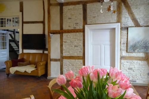 Le Gästehof Brockum, altes Bauernhaus, großer Garten est une charmante maison d'hôtes située à Brockum, en Basse-Saxe, offrant une vue imprenable sur son grand jardin depuis sa terrasse. Avec une connexion Wi-Fi gratuite et un parking privé sur place, vous pourrez profiter d'un séjour confortable et pratique. Cet appartement spacieux comprend 5 chambres, une télévision à écran plat, un lave-linge et 2 salles de bains pourvues d'une baignoire, ce qui le rend parfait pour les familles ou les groupes d'amis. Sa cuisine est équipée d'un lave-vaisselle et d'un micro-ondes, offrant tout le nécessaire pour cuisiner de délicieux repas. Pour plus de commodité, l'établissement peut fournir des serviettes et du linge de lit moyennant des frais supplémentaires. Après une journée de randonnée ou de pêche dans les environs, vous pourrez vous détendre dans le jardin ou le coin salon commun. Situé à seulement 33 km d'Osnabrück et à 50 km de Bielefeld, le Gästehof Brockum, altes Bauernhaus, großer Garten est facilement accessible en voiture. L'aéroport international de Munster Osnabruck, le plus proche, est implanté à 62 km. Réservez dès maintenant pour un séjour paisible et confortable au Gästehof Brockum, altes Bauernhaus, großer Garten.