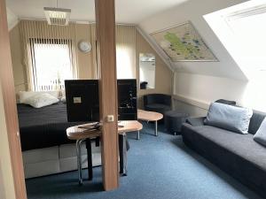 Situé dans la charmante ville de Gräfenhainichen, l'appartement Ferienwohnung Geyer est idéalement situé à seulement 1,1 km de la ville de Ferropolis, offrant une vue imprenable sur le jardin. Vous pourrez profiter gratuitement de la connexion Wi-Fi et d'un parking privé pendant votre séjour. Ce bel appartement, installé dans un bâtiment datant de 1995, est situé à seulement 24 km des maisons de maîtres Dessau et à 27 km de la gare centrale de Wittenberg. Cet appartement climatisé est équipé d'une chambre confortable, d'une télévision à écran plat avec chaînes satellite et d'une cuisine bien équipée pour vous permettre de préparer vos propres repas. Vous pourrez également profiter d'une belle terrasse sur place pour vous détendre et profiter de l'air frais. L'appartement Ferienwohnung Geyer est situé à seulement 23 km de la gare centrale de Dessau et à 24 km du célèbre Bauhaus Dessau. Si vous voyagez en avion, l'aéroport de Leipzig/Halle est le plus proche, à seulement 65 km de l'appartement. Réservez maintenant pour profiter d'un séjour confortable et relaxant dans cette belle région d'Allemagne.