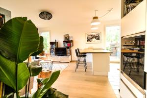 L'Olympique : appartement cosy, vue canal grande terrasse et parking est un hébergement de choix pour les voyageurs à la recherche d'un séjour confortable et pratique à Vaires-sur-Marne. Avec sa terrasse offrant une vue imprenable sur la rivière, cet appartement est idéal pour se détendre après une journée de visites et d'activités. Situé à seulement 27 km de la station de métro Gare du Nord et de la gare du Nord, L'Olympique est facilement accessible depuis les principales attractions de Paris. De plus, vous bénéficierez gratuitement d'un parking privé sur place, ce qui est un avantage considérable pour ceux qui voyagent en voiture. L'appartement est équipé d'une chambre confortable, d'une télévision à écran plat et d'une cuisine entièrement équipée avec un lave-vaisselle, un micro-ondes, un lave-linge, un réfrigérateur et un four. Les serviettes et le linge de lit sont fournis, ce qui allège considérablement vos bagages. Les familles avec enfants apprécieront l'aire de jeux pour enfants disponible sur place, tandis que les amateurs de randonnée pourront découvrir les environs pittoresques de la Marne. L'Olympique est également bien situé pour les visiteurs souhaitant explorer les sites touristiques de Paris, avec l'opéra Bastille à seulement 28 km et le stade de France à 29 km. L'aéroport de Paris-Charles-de-Gaulle, le plus proche, est implanté à 34 km. Réservez dès maintenant votre séjour à L'Olympique : appartement cosy, vue canal grande terrasse et parking pour profiter d'un hébergement confortable et pratique à Vaires-sur-Marne.