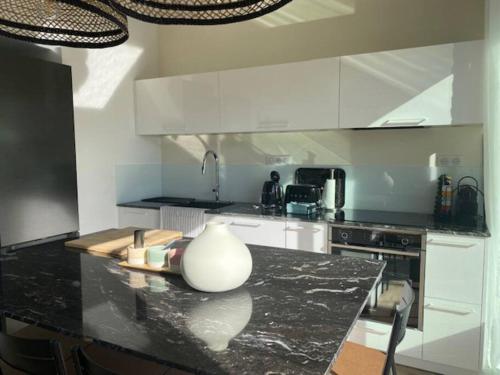 Cet appartement offre une vue sur la mer et se trouve à 2,4 km de la plage de Port. Il est climatisé et bénéficie d'une connexion Wi-Fi gratuite et d'un parking privé sur place. Il comprend 2 chambres, une cuisine équipée d'un réfrigérateur et d'un four, une télévision à écran plat, un coin salon et une salle de bains avec douche. Des serviettes et des draps sont fournis. La plage de Foncillon se trouve à 2,5 km et la gare de Saintes à 40 km. L'aéroport de La Rochelle - Ile de Re est à 81 km.