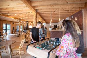 L'Huttopia Forêt des Vosges est une destination de choix pour les amoureux de la nature, située à seulement 15 km du célèbre lac de Gérardmer. Notre établissement offre une variété d'hébergements confortables, allant des tentes aux chalets en bois, en passant par les cabanes perchées dans les arbres. Vous pourrez également profiter de notre restaurant, qui propose une cuisine locale et des produits frais de saison. Notre jardin et notre terrasse offrent un cadre idyllique pour se détendre et se ressourcer. Si vous cherchez à vous remettre en forme, notre sauna est à votre disposition pour vous aider à vous relaxer. Les activités ne manquent pas à l'Huttopia Forêt des Vosges. Vous pourrez jouer au ping-pong sur place ou partir en randonnée dans les environs pour découvrir les magnifiques paysages des Vosges. La gare d'Epinal se trouve à 40 km, tandis que le lac de Longemer est à 17 km. L'aéroport international de Strasbourg, le plus proche, est implanté à 107 km. Notre établissement est équipé de tout ce dont vous avez besoin pour un séjour confortable et agréable. Chaque hébergement est équipé d'un réfrigérateur et d'une machine à café pour votre commodité. Venez vivre une expérience unique dans les Vosges à l'Huttopia Forêt des Vosges !