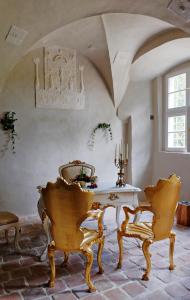 Situé à Bad Freienwalde, le Event-Kultur & B&B Kunst Schloss Neuenhagen Übernachten im Denkmal est un hébergement doté d'un barbecue et d'un jardin. L'établissement se trouve à seulement 7 km de Schanzen am Papengrund. Vous pourrez profiter gratuitement d'une connexion Wi-Fi et d'un parking sur place. Les chambres disposent d'une salle de bains privative avec douche et articles de toilette gratuits. Certaines chambres ont également une terrasse pour vous offrir une vue imprenable sur les environs. Le bâtiment vieux de 500 ans est habité par les propriétaires, qui ajoutent une touche personnelle à votre séjour. Attendez-vous à une expérience unique, sans télévision pour garantir une détente totale. Un petit-déjeuner continental est servi chaque matin sur place. Pour explorer les environs, un service de location de vélos est disponible sur place. L'aéroport de Berlin-Tegel se trouve à 60 km de l'établissement. Réservez votre séjour dès maintenant pour vivre une expérience inoubliable dans ce lieu historique.