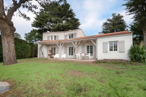Découvrez la Maison pour 8 avec piscine à Préfailles, une charmante maison de vacances offrant une vue sur le jardin et dotée d'une piscine privée. Avec sa terrasse et sa bouilloire, cette location de vacances est idéale pour passer un séjour en toute tranquillité, à seulement 600 mètres de la plage de Port Meleu. Profitez également de la connexion Wi-Fi gratuite pour rester connecté avec vos proches. Cette maison de vacances est équipée de 4 chambres, d'une télévision, d'un lave-linge et de 2 salles de bains pourvues d'une douche. Sa cuisine équipée comporte un lave-vaisselle et un micro-ondes pour préparer vos repas en toute simplicité. Située à proximité de plusieurs plages, la Maison pour 8 avec piscine à Préfailles est à seulement 1,2 km de la plage de Port aux Goths et à 1,3 km de celle de La Source. L'aéroport le plus proche est celui de Nantes Atlantique, à 55 km. Réservez dès maintenant votre séjour dans cette maison de vacances confortable pour profiter de tout ce que Préfailles a à offrir !